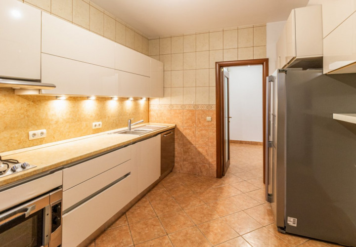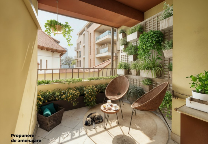 Bucataria de 12.70mp, cu acces din vestibul si din zona de sufragerie, are o suprafata care iti permite sa inviti prietenii la o cina informala, sa prepari bunatati in timp ce beti un pahar de vin in jurul mesei. Fiind o camera inchisa, poti gati orice iti place, fara sa se simta in restul casei. Pe terasa bucatariei (6.20mp) poti sa-ti bei cafeaua in diminetile senine, iar pentru musafiri exista un grup sanitar spatios, de aproape 3mp.