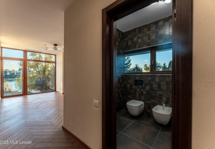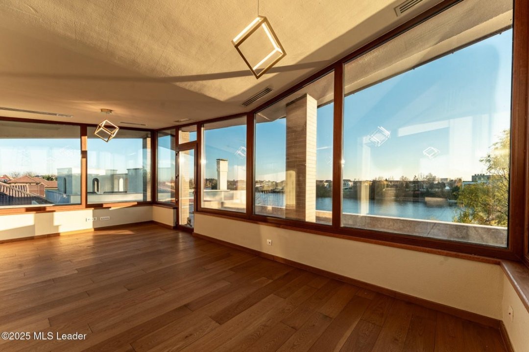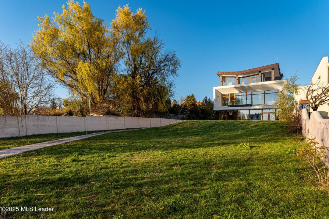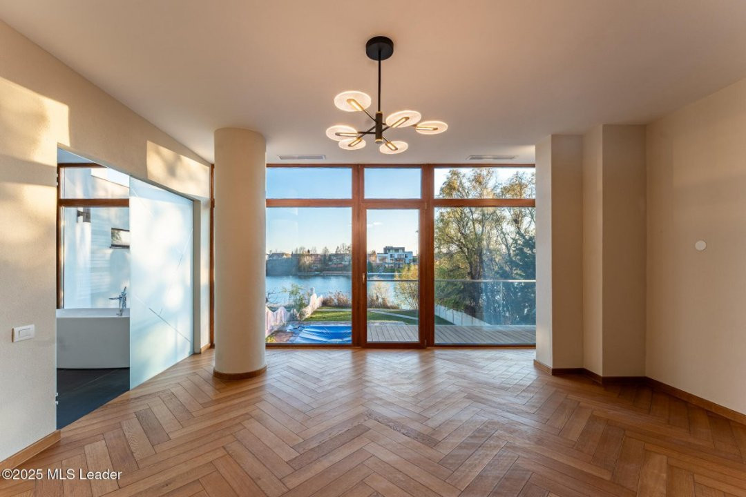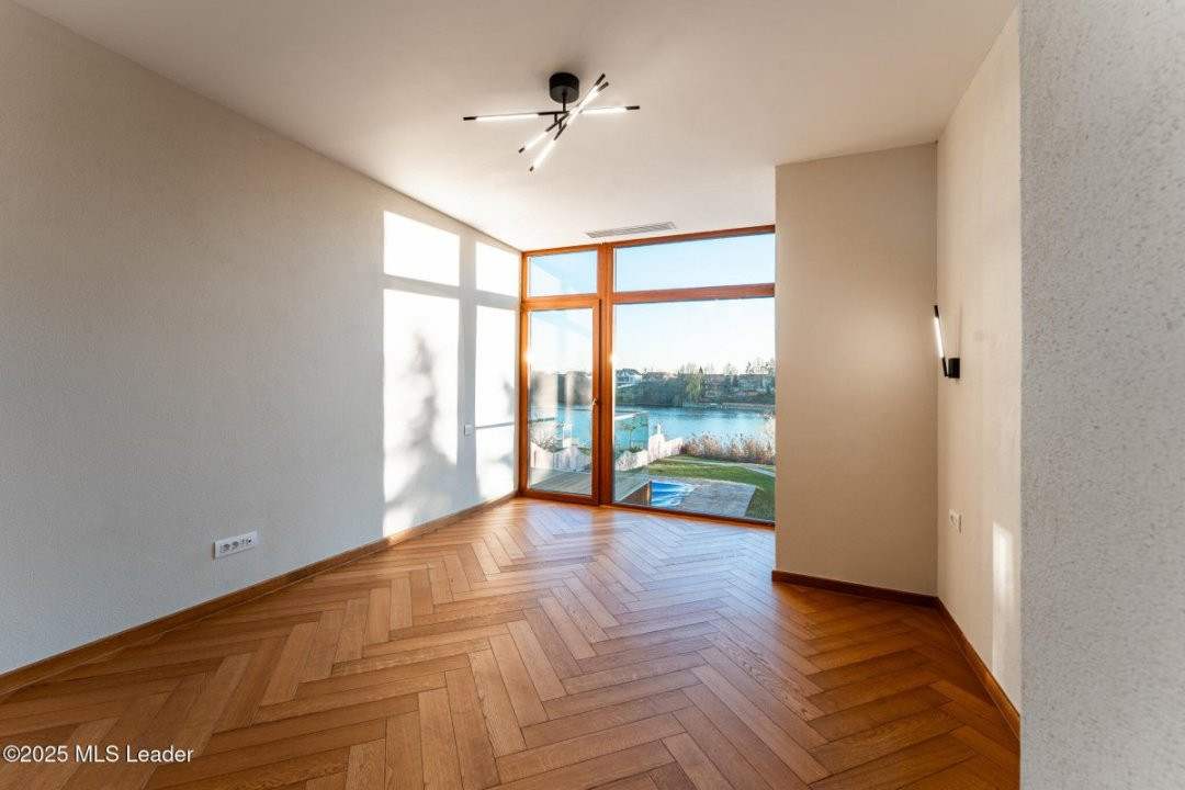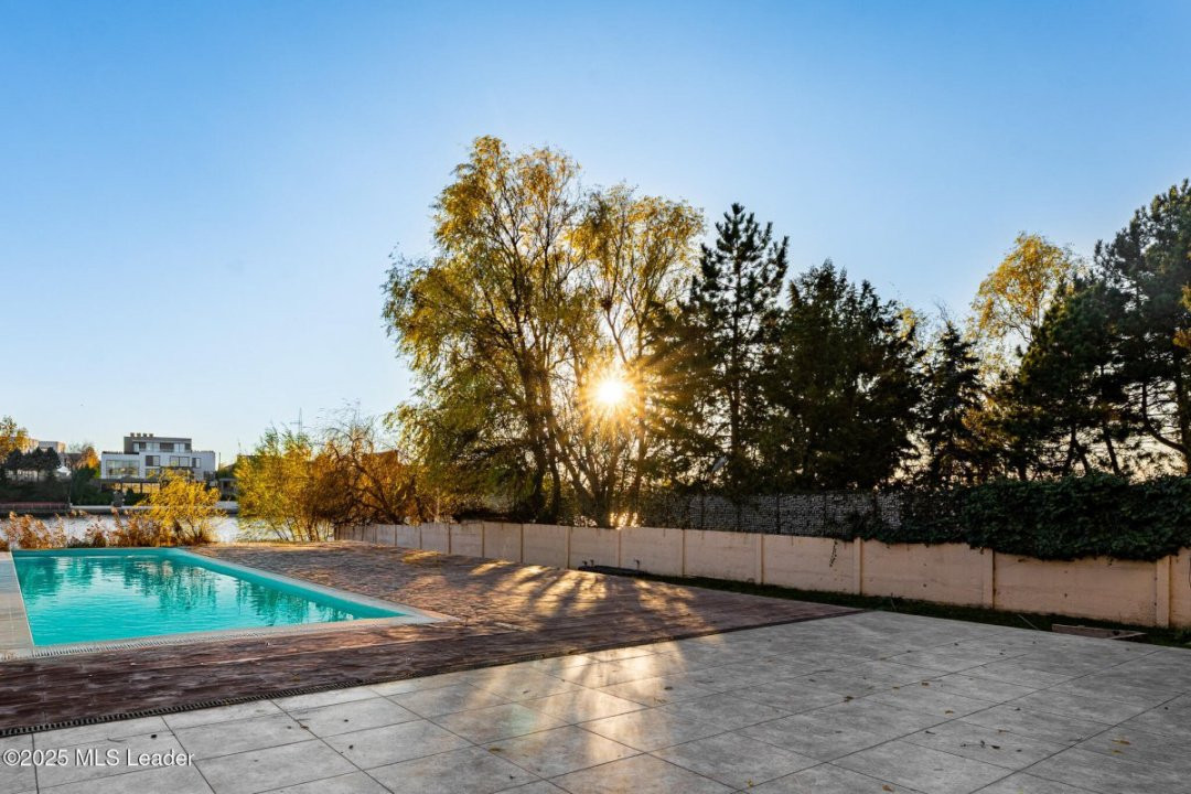 Aici, clasicul si modernul se impletesc in fiecare detaliu. Piscina priveste spre lac, iar apusul se revarsa peste living, gradina si pana in cada de la primul etaj. Spatiile amplu vitrate lasa lumina sa-ti cuprinda privirea peste tot. Semineul modern din sticla aprinde serile cu o caldura calma, iar suprafetele vaste se completeaza minunat cu sauna retrasa de la mansarda.Bucataria complet mobilata/utilata, garajul pentru doua masini si tehnologiile discrete - panouri fotovoltaice, centrala termica, pompa de caldura, aer conditionat - aduc confortul bine meritat.Iar gradina, coborand spre apa, pare o invitatie tacuta la contemplare. Aici, fiecare zi devine lumina si pace. Daca simti chiar si in parte ca ar puta fi ceea ce cauti, te invit la o vizionare sa o descoperi in ritmul tau.